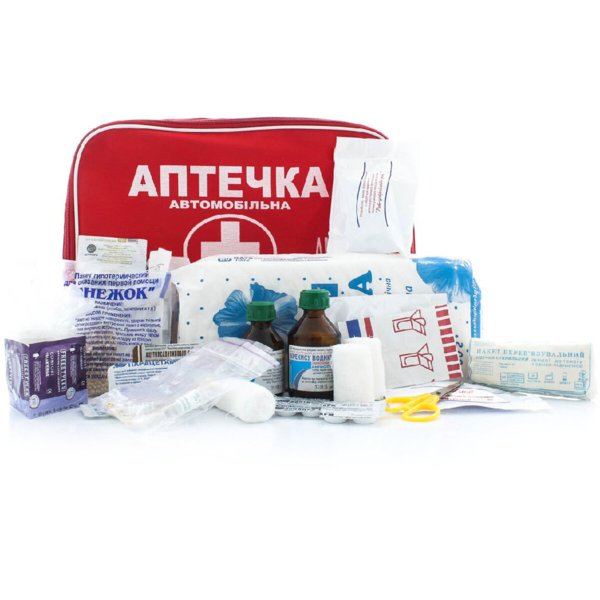 1. Средства для остановки кровотечения, наложение повязок при травмах: 1.1 Жгут или медицинская трубка (2 ед) 1.2 Бинт нестерильный 5 м х 10 см (1 ед.) 1.3 Бинт марлевый нестерильный 5 м х 5 см (2 ед) 1.4 Лейкопластырь в рулоне 1*500 (1 ед) 1.5 Лейкопластырь бактерицидный 1,9см* 7,2см (2 ед) 1.6 Вата медицинская нестерильная 100 гр (1 ед) 2. Антисептические средства 2.1 Раствор перекиси водорода (1 ед) 2.2 Охлаждающий пакет-контейнер (1 ед.) 3. Обезболивающие и сердечные средства 3.1 Таб. ацетилсалициловой кислоты №6 (1 ед) 3.2 Таб. валидола №10 (1 ед) 3.4 Таб. угля активированного №10 (1од) 3.5 Новокаин 0,5% (2 ед) 3.6 Таблетки валерианы или корвалол (1 ед) 4. Дополнительные средства 4.1 Перчатки полиэтиленовые (2 пары) 4.3 Презерватив (3 ед) 4.4 Футляр аптечки (1 ед.) 4.5 Стаканчик для приема лекарства (2 ед) 4.6 Шприц 2 мл для инъекций (2 ед.) 4.7 Медицинский маячок о помощи (2 ед) 4.8 Палочки ватные (4 ед.) 4.9 Устройство для искусственного дыхания (1 ед.) 4.10 Инструкция по оказанию само- и взаимопомощи]]>