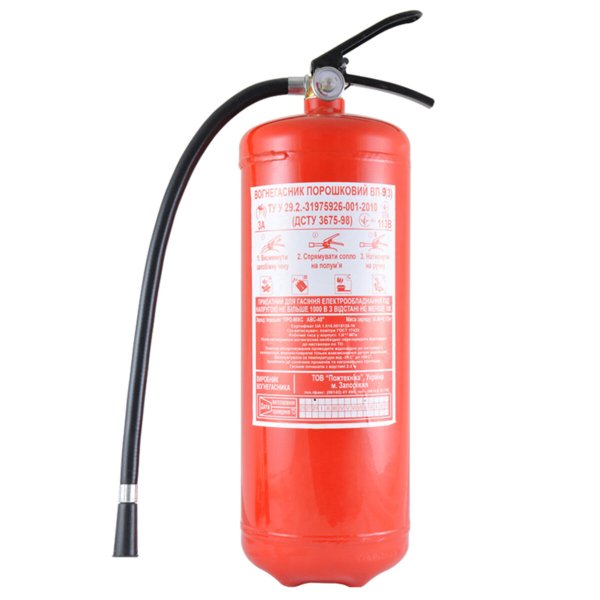 Огнетушитель порошковый ОП-9 срабатывает за счет большого давления в огнетушителе, которое выталкивает порошок из огнетушителя. В огнетушителе порошковом ОП-9 используют порошок общепромышленного назначения, предназначенного ликвидировать пожары классов – А, В, С, Е. Таким общепромышленным порошком не все можно тушить! Запрещено тушить вещества процесс горения которых происходит без доступа кислорода. Что это за вещества? - щелочи металлов и их соединения.