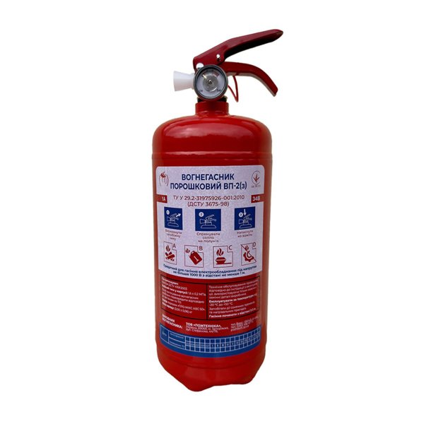 Огнетушитель ОП-2 (VP2-P) — универсальный порошковый огнетушитель для эффективного гашения возгораний твердых, жидких и газообразных веществ, а также электроустановок под напряжением до 1000 В. Оптимальный выбор для автомобилей, мастерских, гаражей, офисов и бытовых помещений.