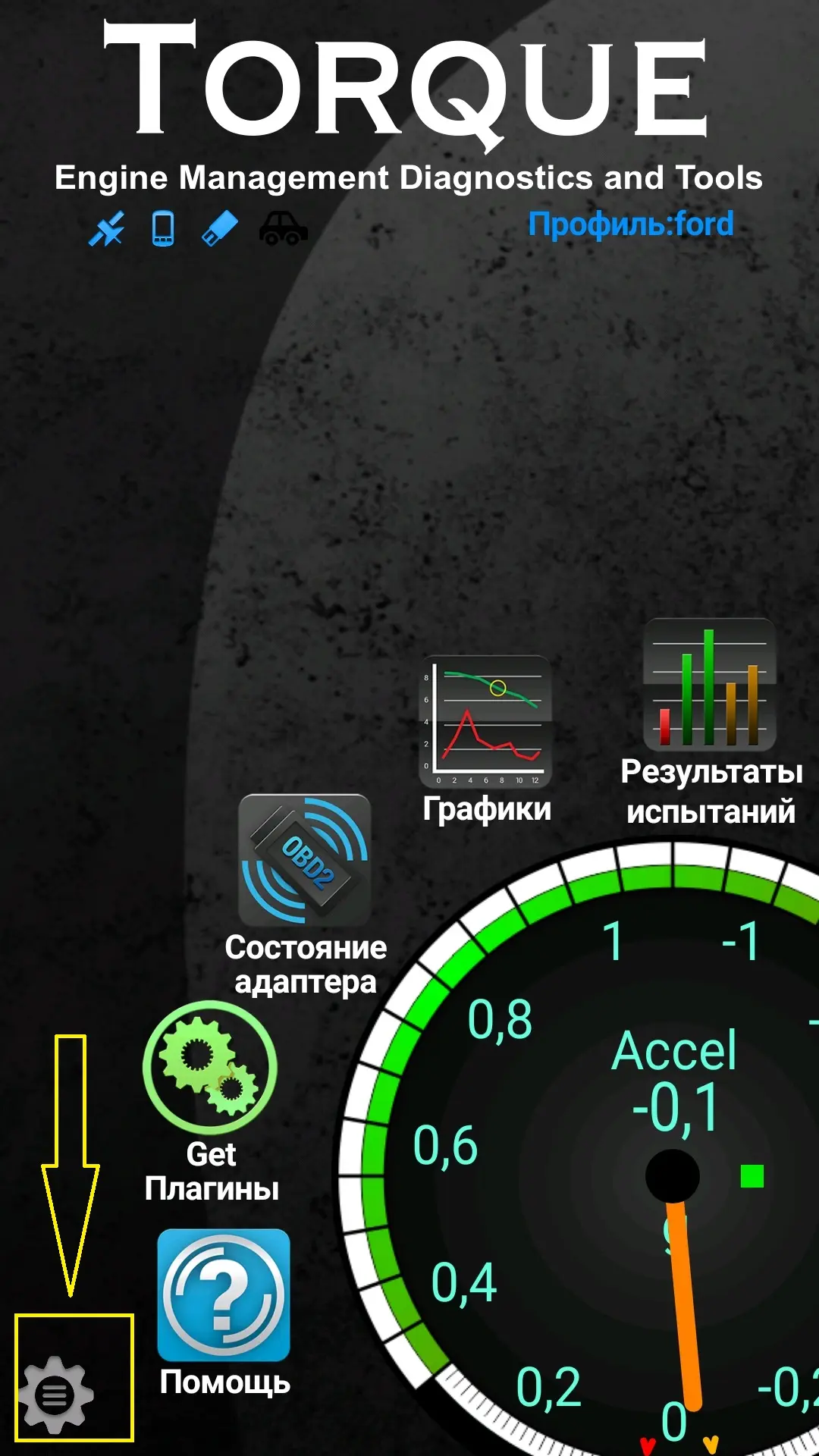 Для настройки нужно подключить OBD в разъем. После этого включают зажигание и сам OBD. С помощью функции настройки телефона можно совершить подключение к OBD. Для этого используют радиомодуль Bluetooth или Wi-Fi, в зависимости от аппаратных возможностей коммуникатора. После синхронизации с программой Torque следует сразу перейти в приборную панель. В верхней строке будет отображаться информация о пингах приложения. Программа тестирует оборудование и подключается к ЭБУ. Для этого может понадобиться немного времени. Пока это будет происходить, в верхнем правом углу можно наблюдать мигающий значек машинки. В конце синхронизации он будет просто светиться. В конце проверяют ошибки, запускают двигатель, тестируют работу приборов.