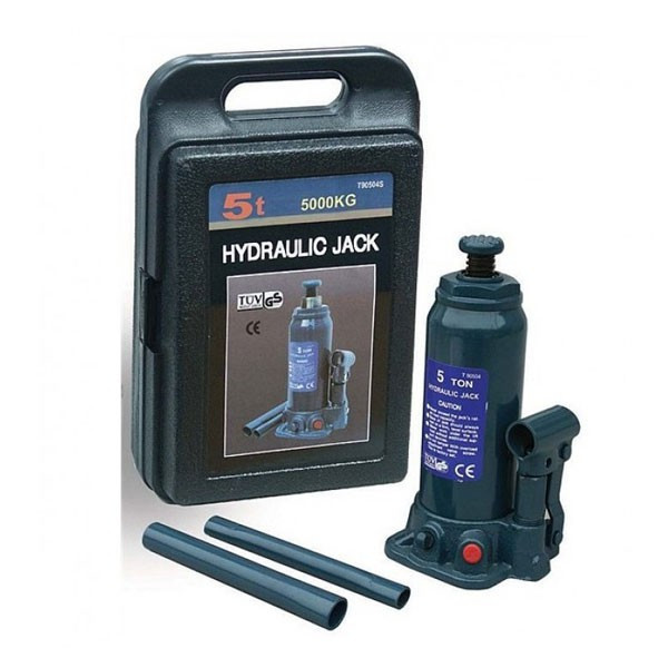 Домкрат 5т 216-413 мм бутылочный в кейсе TORIN T90504S в кейсе имеет грузоподъемность 5 т, а максимальную высоту подъема 413 мм, что более чем достаточно для работы не только с легковыми автомобилями но и с джипами и микроавтобусами. Высота домкрата T90504S - 216 мм, а вес 4,5 кг. Домкрат незаменимый помощник при необходимости поднятия автомобиля для замены колеса или выполнения других ремонтных работ.