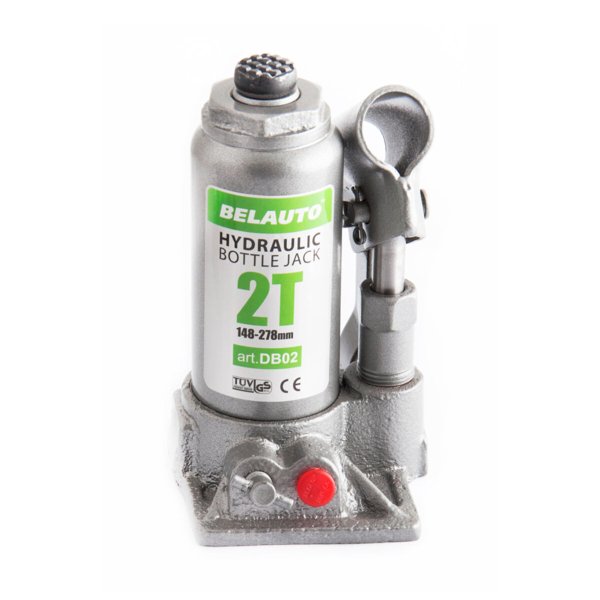 Гидравлический домкрат БелАвто DB02 – универсальный грузоподъемный механизм, предназначенный для подъема, удержания и фиксации автомобиля в процессе проведения ремонтных и диагностических работ. Модель DB02 бутылочного типа с максимальной грузоподъемностью 2 т, что вполне достаточно для легкового автомобиля или микроавтобуса. Достоинством данного домкрата является хорошая высота подъема 276 мм и высота подхвата 148 мм. Корпус домкрата в форме бутылки полностью выполнен из прочного металла. Удлиненная металлическая ручка, складная конструкция, для более эффективного поднятия поршня плунжерного насоса.