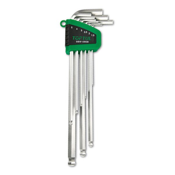 Профессиональный набор Г-образных шестигранников от TOPTUL, модель GSN-09EB, является идеальным выбором для мастеров, которые ценят надежность и удобство инструментов. Изготовлен из высококачественной инструментальной стали S2, каждый ключ имеет повышенную прочность и долговечность.