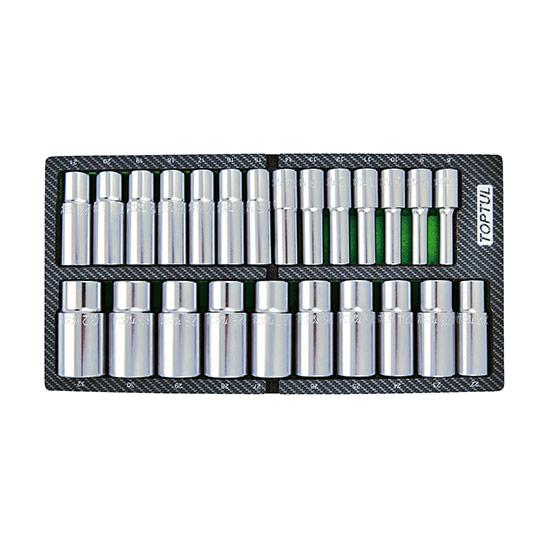 Набор головок длинных 1/2" 8 - 32 мм 24 ед. TOPTUL GEA0241 - это высококачественный инструментальный комплект, который обеспечивает надежность, эффективность и удобство при работе с различными типами креплений. Его универсальность и прочность делают его отличным выбором для профессиональных автомехаников и мастеров, которые ценят качество и эффективность работы.