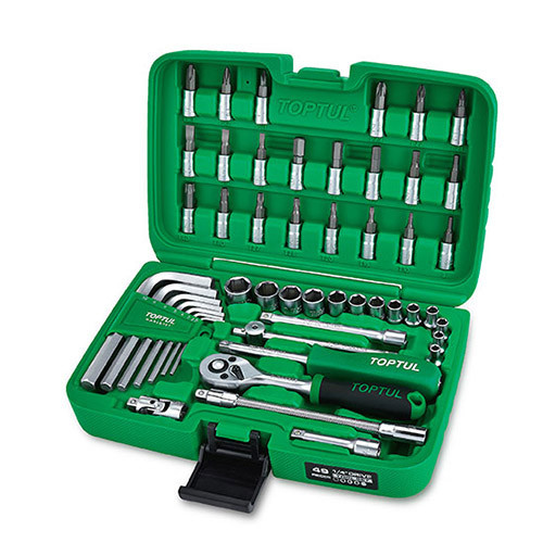 Набір інструменту 1/4" 49 од. TOPTUL GCAI2492 є незамінним комплектом для будь-якої майстерні або гаража. Він містить 49 різних інструментів, які використовуються для виконання різних завдань, як-от затяжка гайок і зняття гвинтів і шурупів, ключі, біти та інші інструменти, які виготовлені з якісних матеріалів, забезпечують довговічність і надійність під час використання. Кожен інструмент має стійку до корозії обробку, що захищає його від впливу атмосферних чинників. Займаючи мінімальний простір, що забезпечує зручність транспортування і зберігання набору, що дає змогу мати всі необхідні інструменти під рукою в будь-який момент.