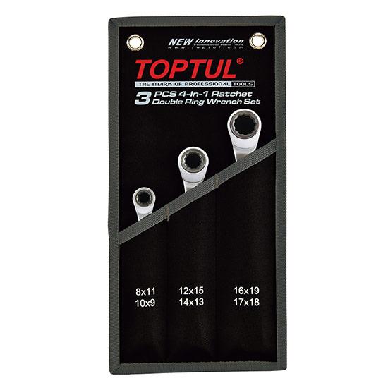 Набор TOPTUL GPAQ0301 из серии Pro-Series включает 4 высококачественных двойных накидных ключа с трещоткой, обеспечивающих универсальность и удобство в работе. Каждый ключ объединяет четыре размера в одном, что позволяет работать с диапазоном от 8 до 18 мм, делая этот набор незаменимым для профессиональных задач.