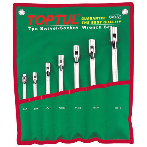 Набор шарнирных ключей колокольчиков TOPTUL 7 шт. 6-19 мм GAAA0704 - 6х7, 8х9, 10х11, 12х13, 14х15, 16х17, 18х19 зеленый чехол]]>