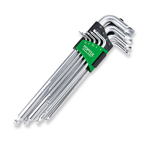 Набор шестигранников 1,5-10мм TOPTUL 9ед. супердлинных с экстрактором и шаром GAAL0927