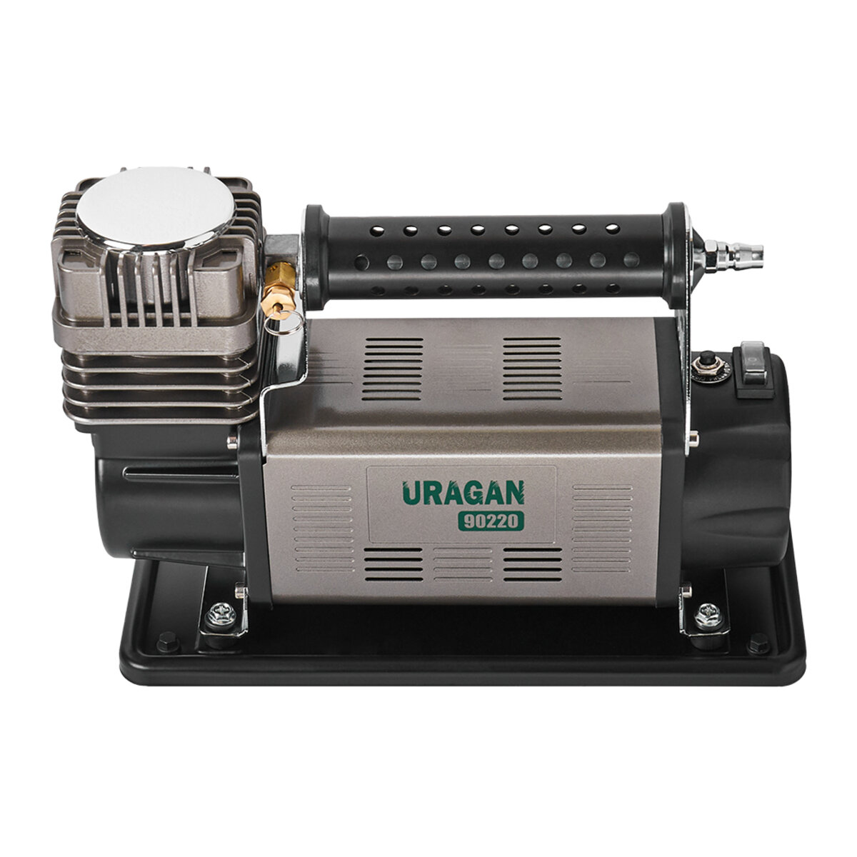 Компресор автомобільний Uragan 90220, професійний, високої потужності. Високоточний манометр з вмонтованим запобіжником, зручна сумка для транспортування та додаткові адаптери.