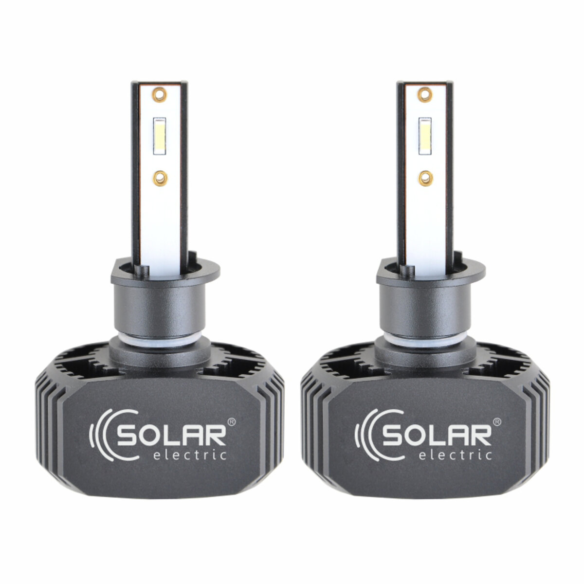 Корпус ламп Solar H1 12/24V 40W 5000Lm 6000K CSP1860 8201 (2 шт.) виконаний з унікального авіаційного алюмінію - матеріалу з високою стійкістю до зовнішніх впливів і відмінними теплопровідними властивостями, завдяки чому виключається ймовірність перегріву світлодіодів і їх вихід з ладу навіть при дуже тривалій роботі. Як джерело світла використовуються світлодіоди CSP1860, розташовані в тому ж місці, що і нитка розжарення в галогенних лампочках, завдяки чому не потрібне тривале регулювання фар і забезпечується чітка світлотіньова межа.