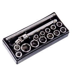 Головки торцеві змінні кв. 10мм. (3/8"). 8, 9, 10, 11, 12, 13, 14, 15, 17, 19, 22 мм. - Головка перехідна (внутр.квадрат на внутр.квадрат). - Шарнір. - Подовжувач 125 мм - Ключ-вороток ( стержень з корпусом )]]>